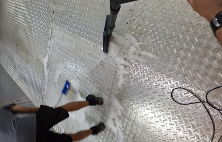 Изчистване на пода – машинна или ръчно с премахване на прах, мръсотия и петна . За постигане на най-добри резултати, използваме подходящи почистващи препарати и специализирани машини.